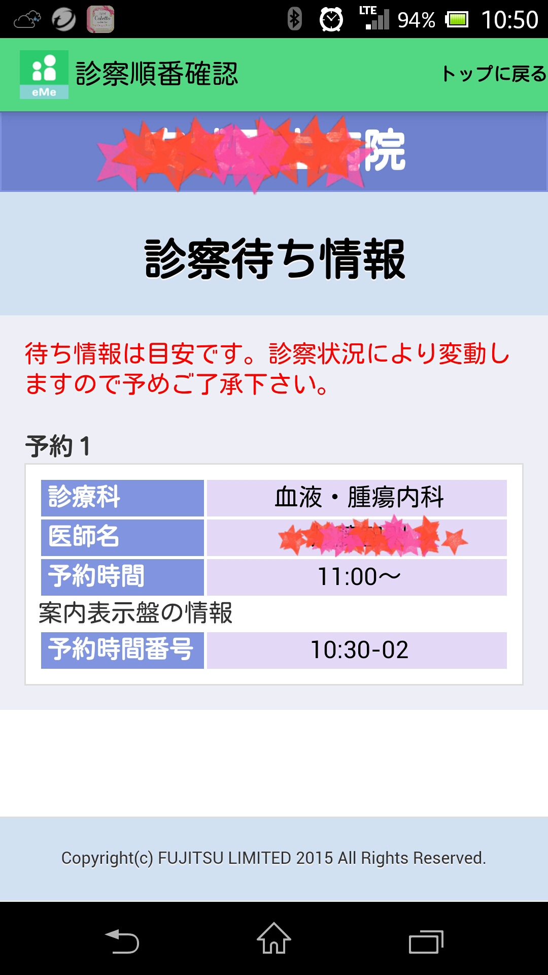 スタンプで病院名と主治医のお名前は隠しました~★☆★