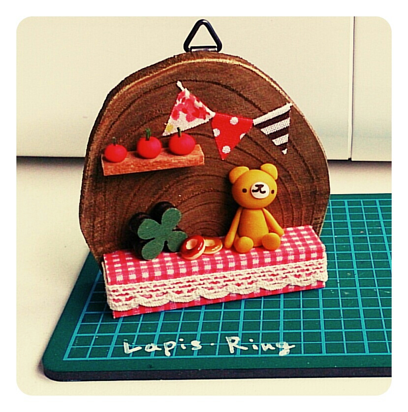 木製のプレートを使って ミニチュア置物にしました