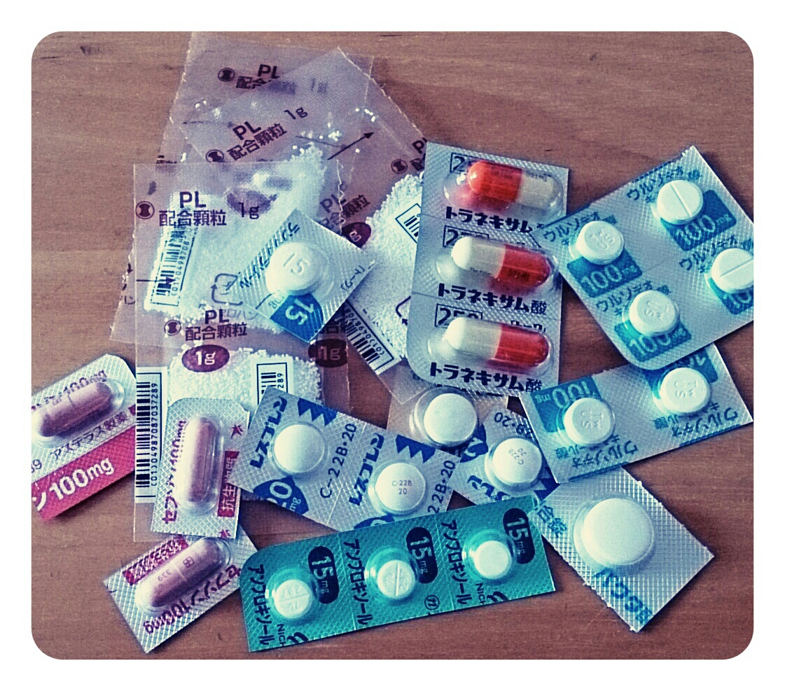 1日分の薬。風邪薬飲むとお腹調子悪くなるんだよなぁ(-_-;)