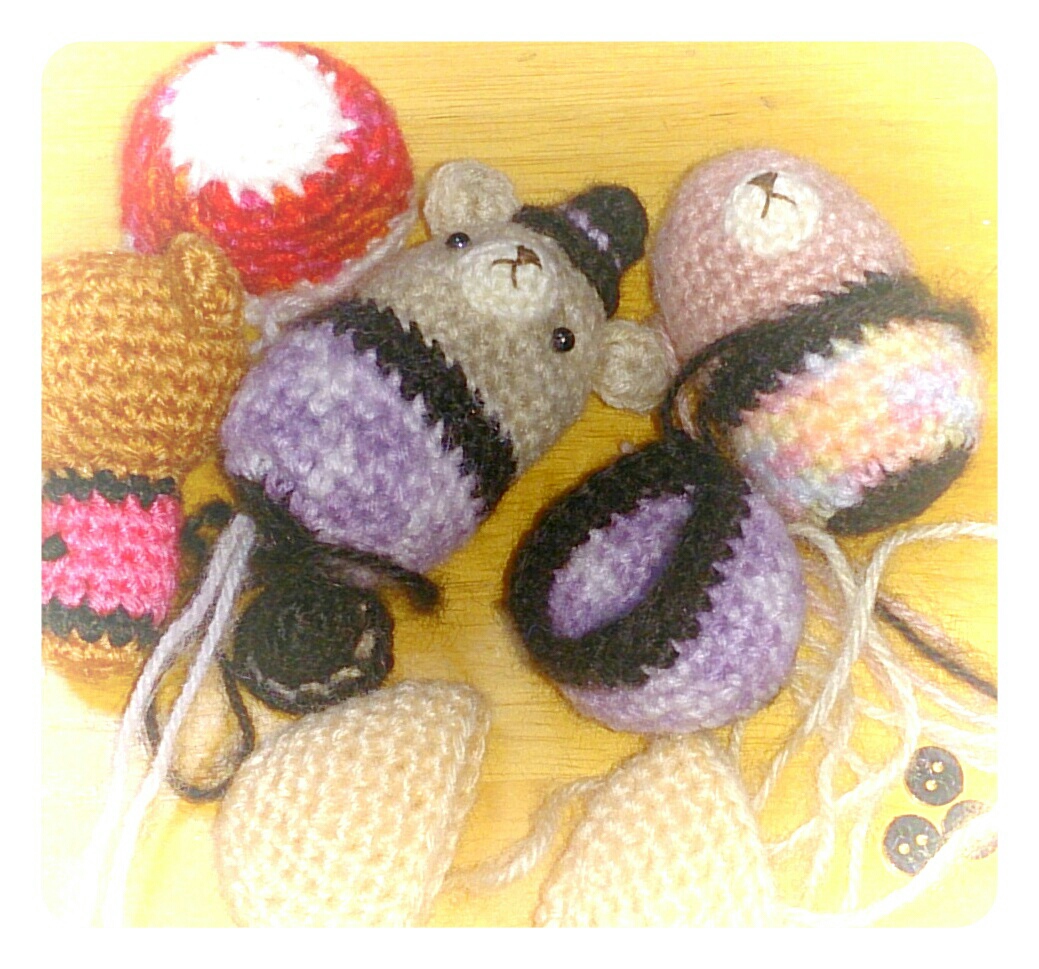 在庫が少なくなってきたので、ちびクマ達も追加で編みました